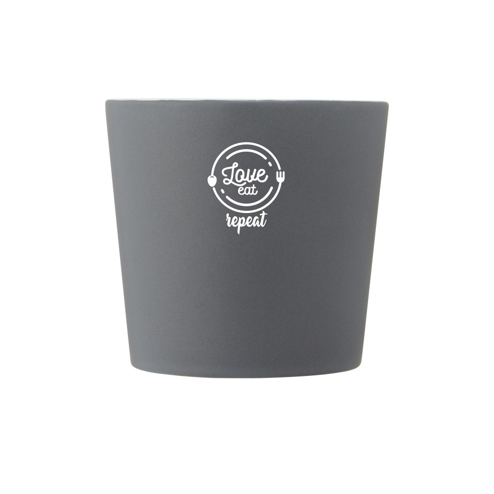 Kerámia bögre modern dizájnnal és matt felülettel. Nem szivárgásmentes. Szénsavas italokkal is használható. Mosogatógépben mosható és mikrohullámú sütőben történő melegítésre alkalmas. Űrtartalom: 370 ml. Újrahasznosított karton díszdobozban.