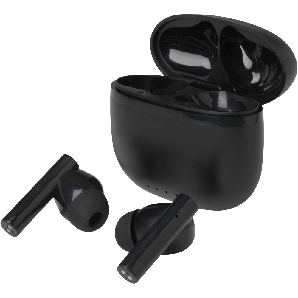 Az Alterf TWS Bluetooth fülhallgató stílusos vezeték nélküli hangzást biztosít, miközben újrahasznosított műanyagból készült váza és puha szilikon füldugói kényelmes illeszkedést garantálnak. Ez a sztereó headset egy kompakt töltőtokkal érkezik, a Bluetooth 6.0 technológiának köszönhetően pedig stabil kapcsolatot, valamint akár 4 órányi beszélgetési vagy zenelejátszási időt kínál. A teljes újratöltés mindössze 1-1,5 órát vesz igénybe, a csomag pedig tartalmaz egy 30 cm-es USB-A - Type-C töltőkábelt is.