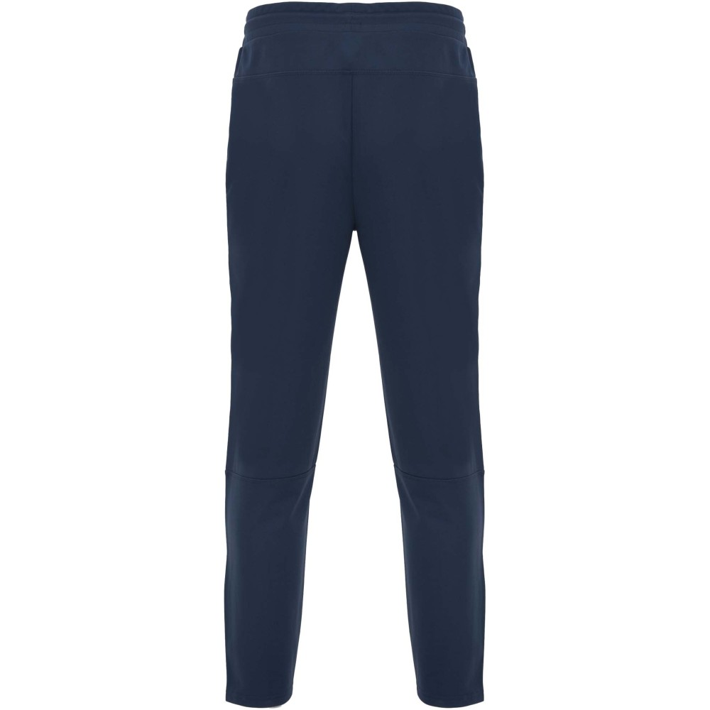 Szűkített hosszú nadrág. Technikai anyag. Gumis derék húzózsinórral. Oldalzsebek. Keresztirányú szakaszok a szár közepén. A szárán oldalslicc cipzárral. Eltávolítható címke.