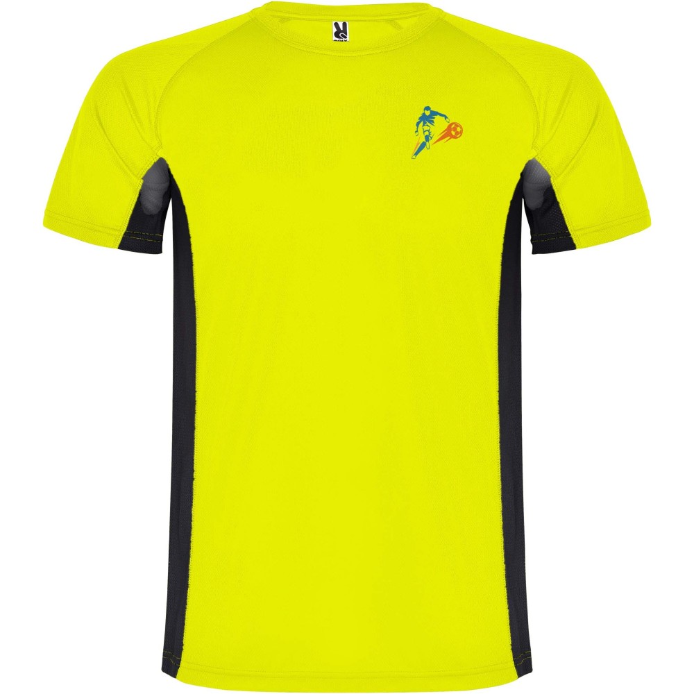 Roly Shanghai rövid ujjú gyerek sportpóló, fluor yellow, solid black